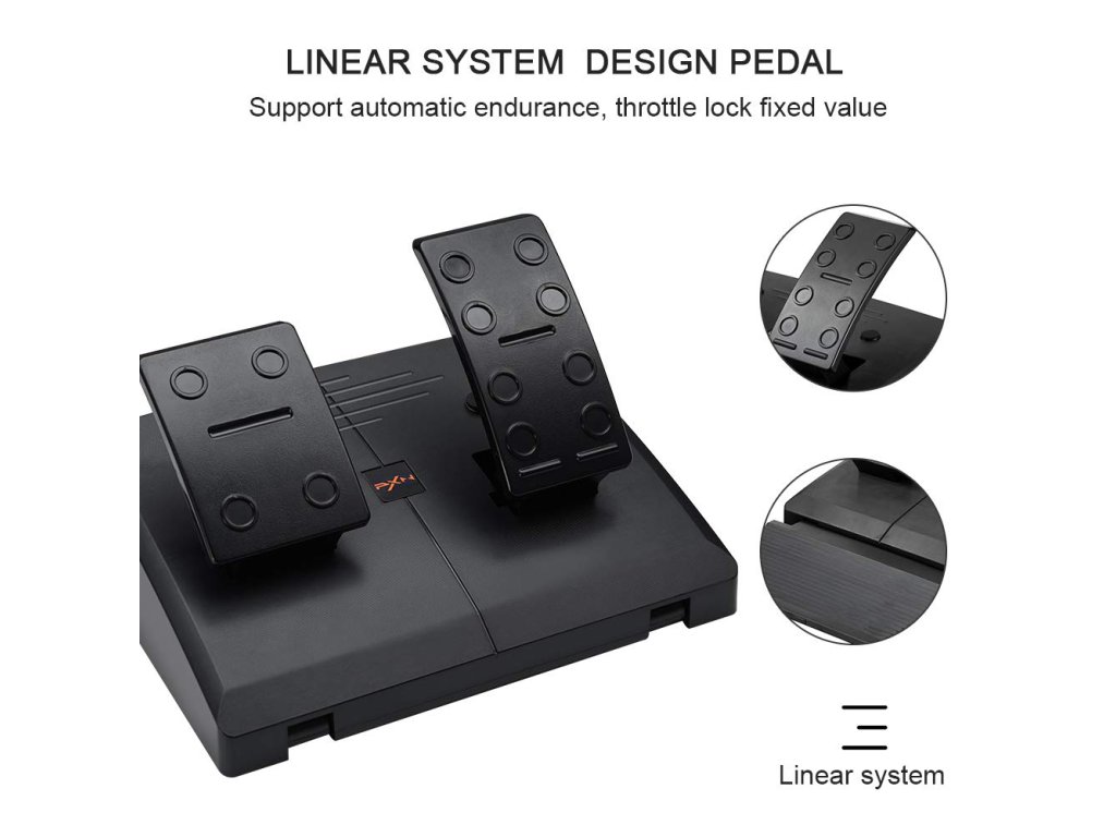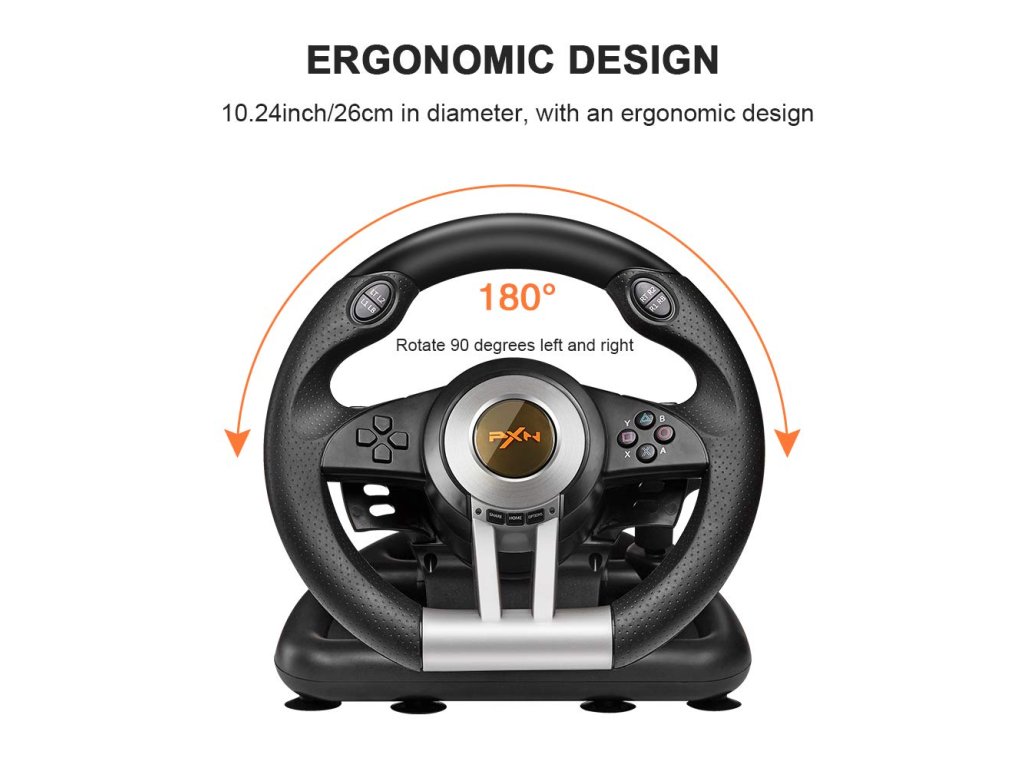 Volant PXN V3II s řadící pákou a pedály pro PS3, PS4, Xbox One, Xbox Series X/S a PC. Průměr volatu 26, 180° úhel otáčení, který se přizpůsobí tvým jízdním návykům a poskytuje tak věrný závodní zážitek. Vrchní strana volantu nabízí několik ovládacích tlačítek, pod volantem se potom na obou stranách nachází tzv. pádla - pro sekvenční řaźení. K volantu jsou také 2 pedály (plyn a brzda). Volant i pedály jsou vybaveny přísavkami a lze je snadno připevnit na rovný povrch. Připojení pomocí USB.