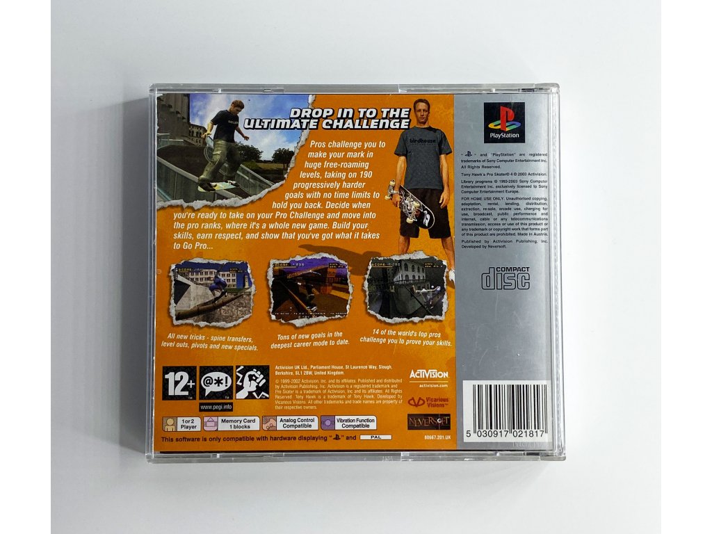 Hra Tony Hawk`s Pro Skater 4 přinesla dosud nejhlubší a nejpropracovanější herní zážitek v sérii Tony Hawk's Pro Skater. Naleznete zde vylepšený mód kariéry, díky kterému dostanete šanci získat si uznání a respekt ostatních profesionálních jezdců - pokud je ovšem překonáte! Profi výzvy jsou založeny na osobní historii každého ze skateboardistů. Čtvrtý díl Tonyho Hawka je posledním dílem série, který vyšel pro první Playstation.
