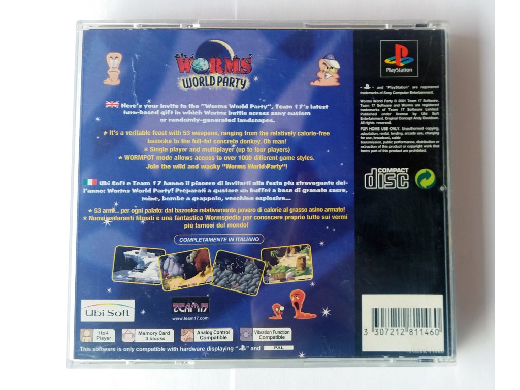 Jedna z nejzajímavějších a nejpříjemnějších her na světě zasáhla Playstation ve svém dosud nejvíce zaměřeném pokračování pro více hráčů! Worms World Party nabízí globálně přitažlivý humor, návykové hry pro více hráčů a nesčetné množství herních možností, díky nimž se budete stále vracet.