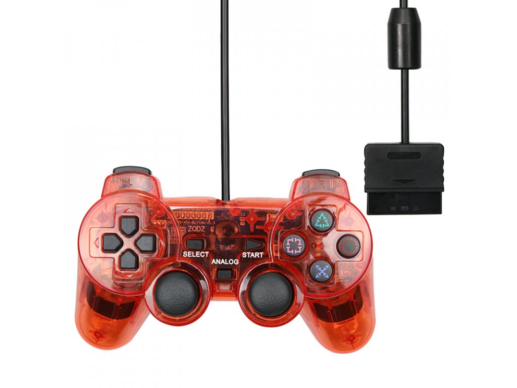 Drôtový ovládač pre PS1 a PS2 - Priehľadný Červený, nový