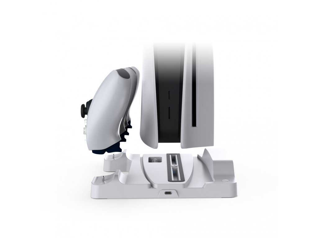 Multifunkčná stanica od spoločnosti DOBE - umožňuje nabíjať až dva ovládače PlayStation 5 a chladiť konzolu PlayStation 5, LED indikátor nabitia batérie ovládača, 3 voliteľné rýchlosti chladenia, vyrobená z vysokokvalitného ABS plastu, vrátane prepäťovej ochrany.
