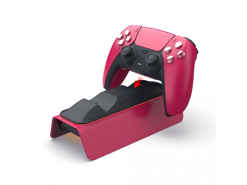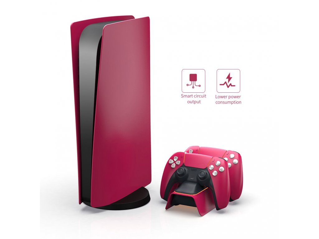 Nabíjacia stanica od spoločnosti DOBE - pre dva ovládače PlayStation 5, v atraktívnom dizajne Stardust Red - ideálna pre kombináciu s krytom a ovládačmi PlayStation 5 Cosmic Red, rozmery 191 x 85 x 60 mm, vyrobená z vysokokvalitného ABS plastu, vrátane prepäťovej ochrany.